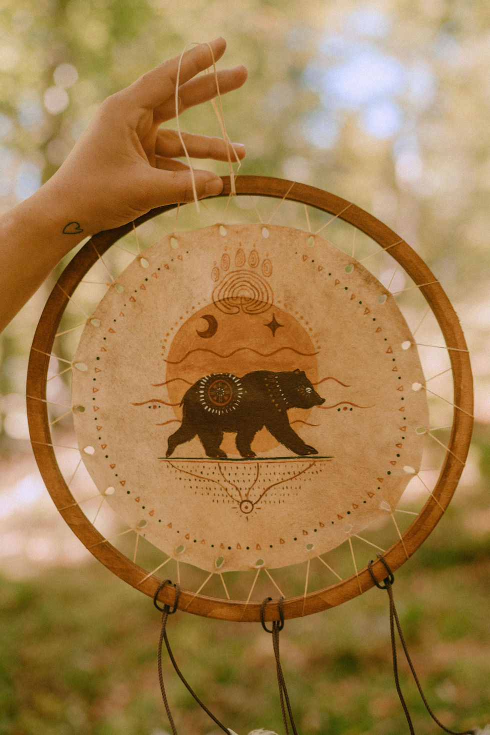 Les secrets de fabrication du tambour médecine m'ont été d'ailleurs soufflés par un membre du peuple des premiers nations, et je crée avec ce soutien, tel une mission à accomplir, afin de faire raisonner ces vibrations millénaires en chacun de vous.